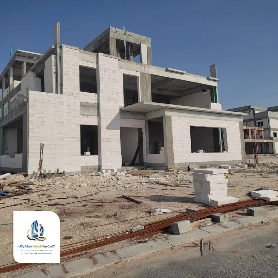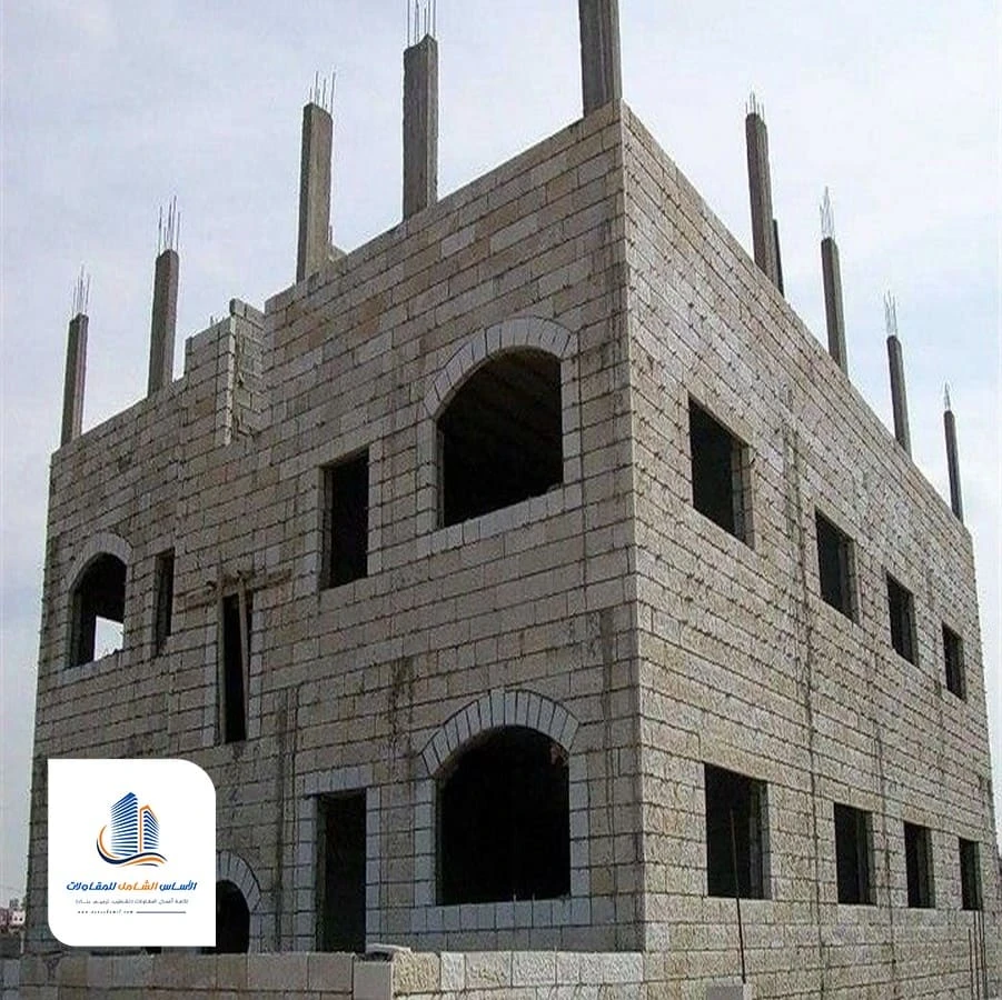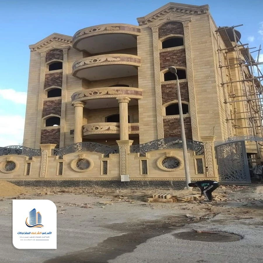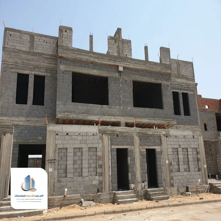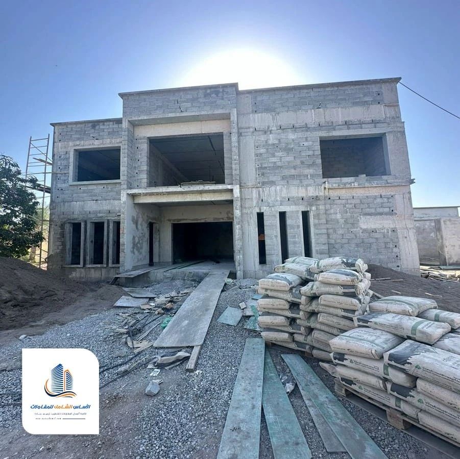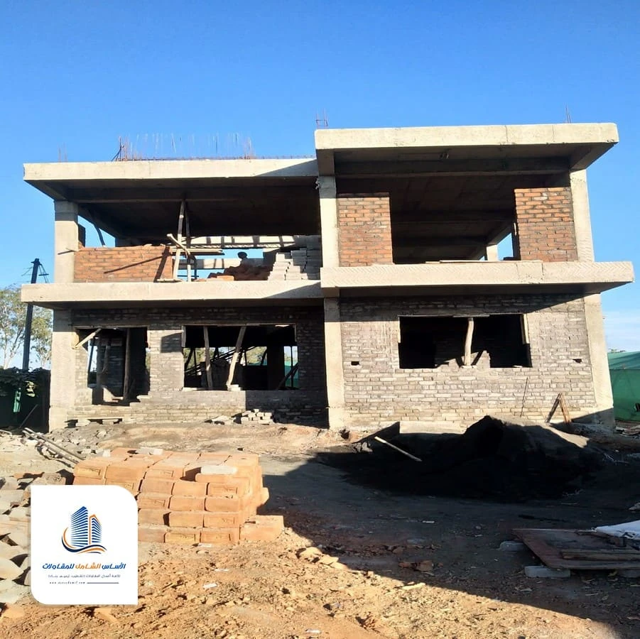 يتم بناء الجدران الداخلية والخارجية حسب المخطط، مع مراعاة توزيع الغرف والمساحات. هذه المرحلة تحدد الشكل العام للعمارة أو الفيلا.