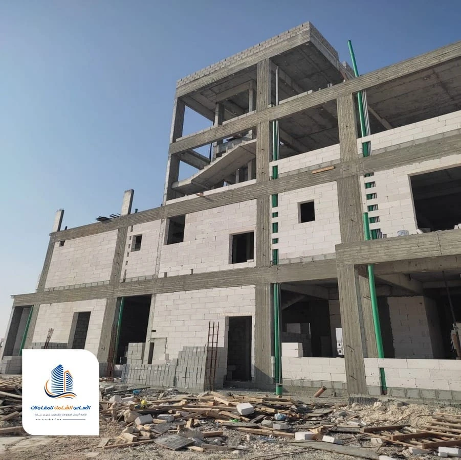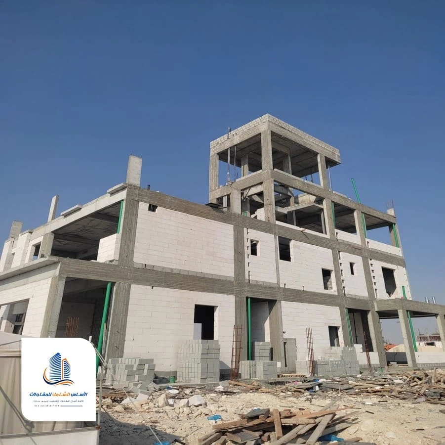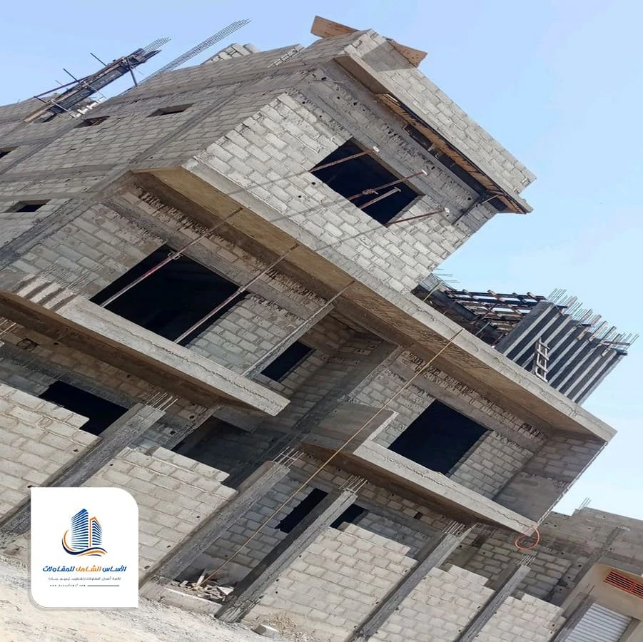 - تنفيذ الهيكل الخرساني وفق المخططات الهندسية المعتمدة.