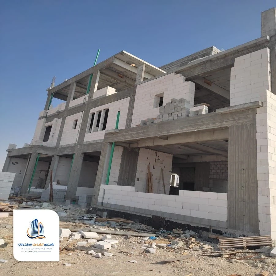 تشمل تسوية الأرضيات وتجهيز الجدران. هذه المرحلة تجعل المبنى جاهزًا للانتقال إلى التشطيب الداخلي والخارجي حسب الخطة.